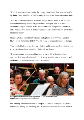 Liverpool Philharmonic retiring musician Jonathan Small, in