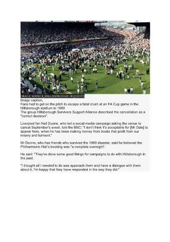 The group Hillsborough Survivors Support Alliance described the cancellation as a