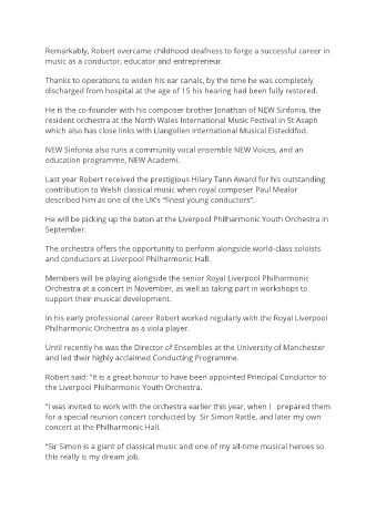 Robert said: “It is a great honour to have been appointed Principal Conductor to
