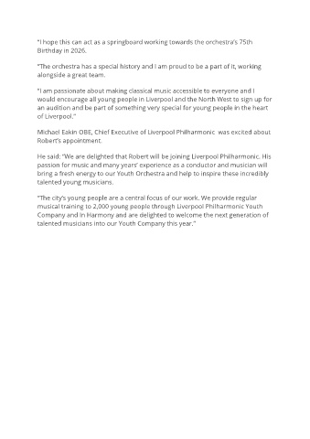 He said: “We are delighted that Robert will be joining Liverpool Philharmonic. His