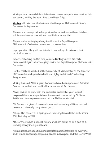 Mr Guy will take over the baton at the Liverpool Philharmonic Youth
