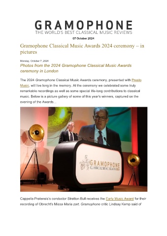 The 2024 Gramophone Classical Music Awards ceremony, presented with Presto