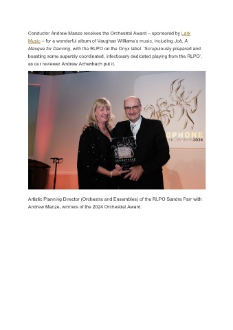 Conductor Andrew Manze receives the Orchestral Award – sponsored by Lark