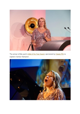 The winner of this year's Artist of the Year Award, sponsored by Classic FM, is soprano Carolyn Sampson.