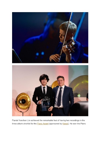 Pianist Yunchan Lim achieved the remarkable feat of having two recordings in the three-album shortlist for the Piano Award (sponsored by Kawai). He won the Piano