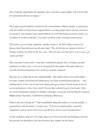 for teachers. And around Leeds and Bradford you will find pianos on street corners: an