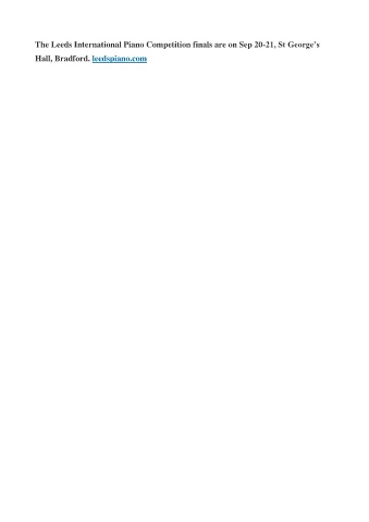 The Leeds International Piano Competition finals are on Sep 20-21, St George’s Hall, Bradford. leedspiano.com