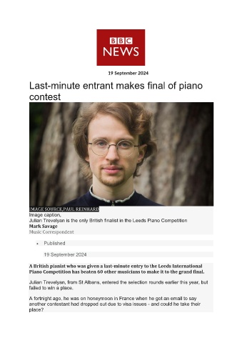 Julian Trevelyan is the only British finalist in the Leeds Piano Competition
