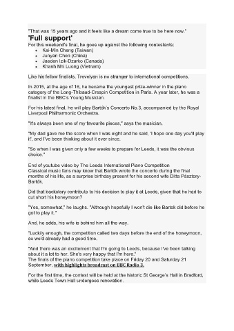 Like his fellow finalists, Trevelyan is no stranger to international competitions.