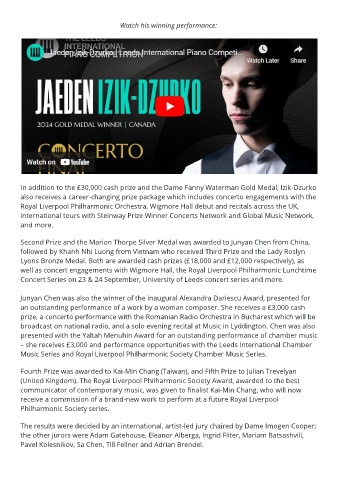 In addition to the £30,000 cash prize and the Dame Fanny Waterman Gold Medal, Izik-Dzurko