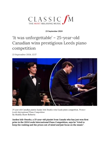 prize in the 2024 Leeds International Piano Competition, says he “tried to