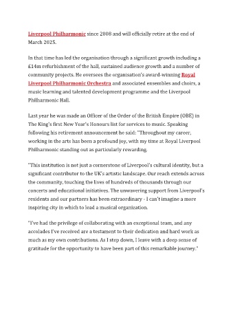 Liverpool Philharmonic since 2008 and will officially retire at the end of