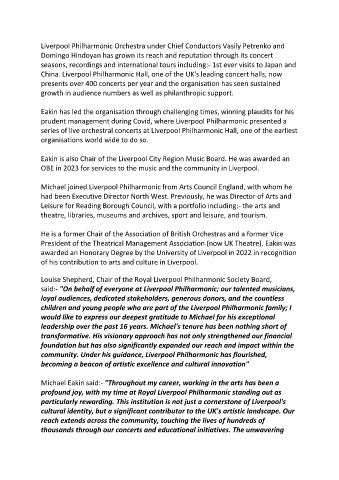 said:- "On behalf of everyone at Liverpool Philharmonic; our talented musicians,