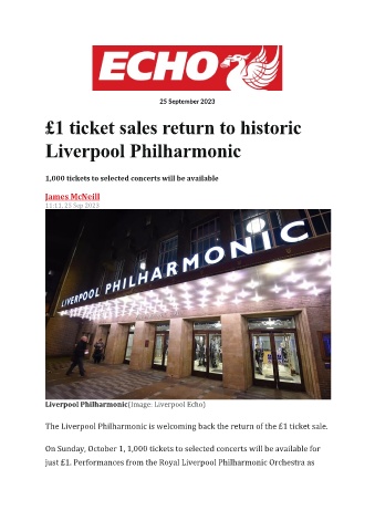 The Liverpool Philharmonic is welcoming back the return of the £1 ticket sale.