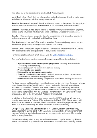 This latest set of music creators to join the LIMF Academy are:
