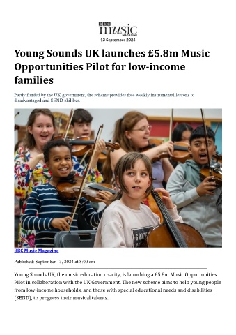 Young Sounds UK, the music education charity, is launching a £5.8m Music Opportunities
