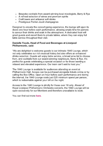 Royal Liverpool Philharmonic Orchestra concerts, the 1840 Lounge will be