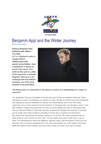 The Winterreise is a monument to the history of music. Is it intimidating for a singer to