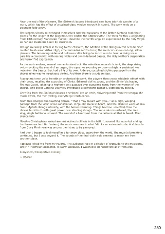 their bows, recalling the scourging of Christ. Ethereal violins sound, and the Sinfonia's leader,