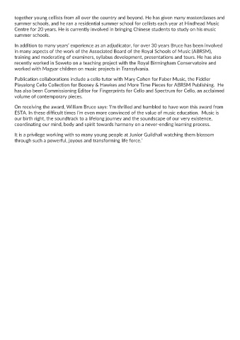 Publication collaborations include a cello tutor with Mary Cohen for Faber Music, the Fiddler