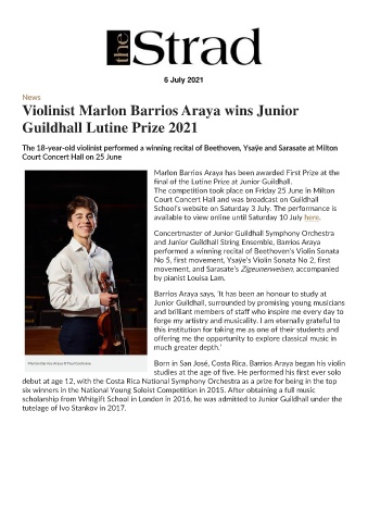 scholarship from Whitgift School in London in 2016, he was admitted to Junior Guildhall under the
