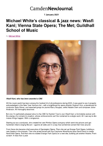 But one I’m particularly pleased about is the CBE for Kentish Town’s own Wasfi Kani: a formidable woman with