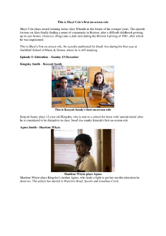 he is considered to be disruptive in class. Small Axe marks Kenyah's first on-screen role.