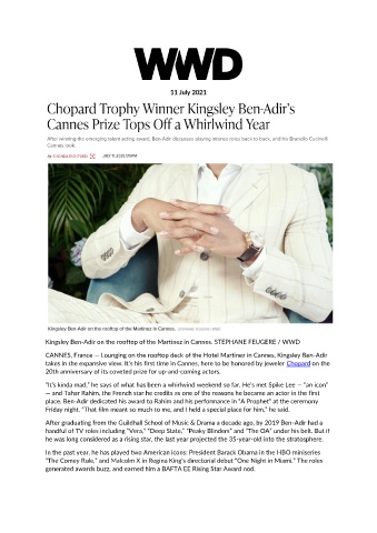 Kingsley Ben-Adir on the rooftop of the Martinez in Cannes. STEPHANE FEUGERE / WWD