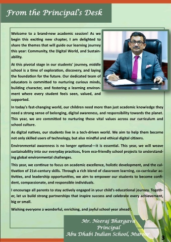 This year, we continue to focus on academic excellence, holistic development, and the cul-