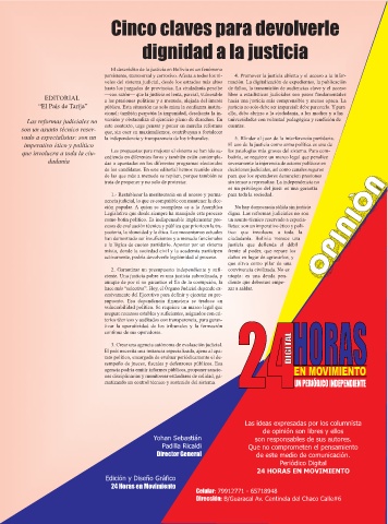 EDITORIAL a las presiones políticas y a menudo, alejada del interés hacia una justicia más comprensible y menos opaca. La