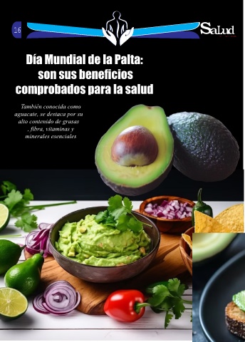 16 Y VIDA Día Mundial de la Palta: son sus beneficios comprobados para la salud También conocida como aguacate, se destaca por su alto contenido de grasas , fibra, vitaminas y minerales esenciales