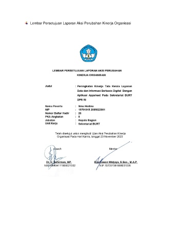 Lembar Persetujuan Laporan Aksi Perubahan Kinerja Organisasi