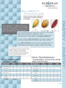 In the foodservice world, there are primarily two kinds of chocolates – couvertures (pate a glacer) and coatings (non-tempering). To be considered a couverture, chocolate has to have 32-34% cocoa butter. Cocoa butter is where chocolate gets its shine, snap and retraction.