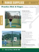 Practice Nets & Cages for Indoor or Outdoor Use38The Ultimate Sports Cage The affordable net system you’ve been asking for! Includes 8 specially designed corner brackets. You add the PVC pipe!* • Ideal for all sports: golf, tennis, soccer, baseball, football, hockey. • Safety net edging and loop fasteners. Ball never touches framework. • Durable 100% nylon, hexagonal knotless mesh. Double stitched for maximum strength. • U.V. Treated. Perfect for indoor and outdoor use. • Includes baffe.Color: Black.*Requires (12) schedule 40 PVC pipe, 10' x 11/2" Diameter. Available at your hardware or home housewares store. #79140 - $399.99 ea.Power CageNew and improved for easy assembly andlonger life. Ideal for golf shops and outdoorpractice areas. A built-in double hitting wallwithstands the strongest drives.• Self standing cage assembles in minutes.• Durable, lexan plastic posts and fttings snap together. No tools or hardware needed.• One piece netting made of the fnest 7/8" hi-tenacity black polyester. UV treated for outdoor use.• Easy to assemble. Netting velcros to the frame.• Diamond braid polyester rope cross members add stability and maximize wind-load protection.• Includes 36" x 36" target.• 10'H x 10'W x 10'D. Weight: 80 lbs.Ships with UPS in 2 boxes.#79150 - $999.99 ea.3' x 3' Replacement Target For Power CageHeavy-duty 36” x 36” black target made of impact netting. Includes two 5’ ropes to secure to framework.#79151 - $29.99 ea.