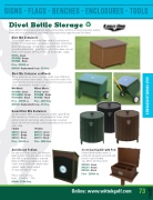 73Divot Bottle StorageGive a different look to your divot mix bottle storage boxes with one of these innovative models. Made with recycled material, each model is designed to be appealing and functional.Divot Mix Containers These sturdy boxes are made from solid recycled plastic lumber. The board joints are tongue and groove containing divot mix internally. Sturdy legs support the box off the ground to protect turf. Great for busy Par 3 tee boxes or cart bottle refill stations. 30”H x 21”W x 26”D. Includes scoop.#T305G - Green #T305BRN - Brown #T305BLK - Black Price - $899.99 ea.#200928 - Replacement Scoop - $5.99 ea.Divot Mix Container on WheelsWe’ve added wheels and a removable handle to our T306 Divot Container to make it more mobile. Simply place the handle in the coupling on the back to relocate the unit and then take the handle to the next container. Includes scoop.Round Divot Mix Containers Weather proof 100% recycled plastic lumber round Divot Mix Containers. Features a recycled plastic frame, three pointed slats for anchoring and a heavy duty recycled plastic lid. All units include easily removable plastic bucket and scoop.Score Card Caddie with PostHinged lid with dividers makes it perfect for storage of scorecards and pencils. 5' post included. Size: 60"H x 16½"W x 14½"D.#405200 - Green #405201 - Brown #405202 - Black Price - $259.99 ea.Arch Design PodiumFor your greeter or starter, this fantastic looking podium will give you years of use with little to no maintenance required. Made of 100% recycled plastic lumber. Comes with a shelf and a double-door cabinet. Logos can be added.37" long, 20" wide, 51" high.Please call to discuss: Logo - Paneling - Trim#T069A - $1199.99 ea.Without Wheels#T306G - Green #T306BRN - Brown #T306BLK - Black Price - $275.99 ea.10 Gallon#405315 - Green #405316 - Brown #405317 - Black Price - $289.99 ea.With Wheels#T306whG - Green #T306whBRN - Brown #T306whBLK - Black Price - $335.99 ea.#200928 - Replacement Scoop - $5.99 ea.5 Gallon#405310 - Green #405311 - Brown #405312 - Black Price - $229.99 ea.
