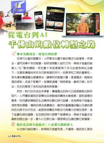 %u50b3%u627f%u5148%u5e2b%u9060%u898b%uff1a%u5f9e%u96fb%u53f0%u5230%u793e%u7fa4%u3000%u3000%u5728%u73fe%u4ee3%u793e%u6703%u7684%u55a7%u56c2%u4e2d%uff0c%u4eba%u5011%u5c0b%u6c42%u5fc3%u9748%u5e73%u975c%u7684%u9700%u6c42%u65e5%u76ca%u589e%u9577%uff0c%u800c%u4f5b%u6cd5%uff0c%u9019%u9580%u6d41%u50b3%u5343%u5e74%u7684%u667a%u6167%uff0c%u59cb%u7d42%u70ba%u7121%u6578%u4eba%u6307%u5f15%u65b9%u5411%u3002%u4f5b%u5f1f%u5b50%u5354%u6703%u7684%u5275%u8fa6%u4eba%u4e0a%u767d%u4e0b%u96f2%u8001%u79aa%u5e2b%uff0c%u65e9%u5728%u6578%u5341%u5e74%u524d%u4fbf%u5c55%u73fe%u4e86%u975e%u51e1%u7684%u9060%u898b%u8207%u5f18%u6cd5%u9b44%u529b%u3002%u5728%u8cc7%u8a0a%u50b3%u64ad%u5c1a%u672a%u5982%u4eca%u65e5%u822c%u767c%u9054%u7684%u5e74%u4ee3%uff0c%u4ed6%u4fbf%u6df1%u77e5%u5de5%u5177%u7684%u91cd%u8981%u6027%uff0c%u7387%u5148%u904b%u7528%u5ee3%u64ad%u96fb%u53f0%u5ba3%u8b1b%u4f5b%u6cd5%uff0c%u8b93%u4f5b%u9640%u7684%u667a%u6167%u4e4b%u8072%uff0c%u900f%u904e%u96fb%u6ce2%uff0c%u8de8%u8d8a%u5730%u7406%u7684%u9650%u5236%uff0c%u8d70%u9032%u5343%u5bb6%u842c%u6236%u3002%u8001%u79aa%u5e2b%u9019%u7a2e%u300c%u8207%u6642%u4ff1%u9032%uff0c%u5584%u7528%u65b9%u4fbf%u300d%u7684%u4f5c%u6cd5%uff0c%u5728%u5728%u7684%u5c55%u73fe%u4e86%u8001%u548c%u5c1a%u7684%u9060%u898b%u8207%u667a%u6167%u3002%u3000%u3000%u7136%u800c%uff0c%u6642%u4ee3%u7684%u6d2a%u6d41%u5f9e%u672a%u505c%u6b47%uff0c%u5ee3%u64ad%u96fb%u53f0%u7684%u6642%u4ee3%u5df2%u7d93%u88ab%u7db2%u8def%u793e%u7fa4%u6240%u53d6%u4ee3%uff0c%u4eba%u5011%u7372%u53d6%u8cc7%u8a0a%u7684%u7fd2%u6163%u4e5f%u5f9e%u88ab%u52d5%u63a5%u6536%u8f49%u70ba%u4e3b%u52d5%u641c%u5c0b%u3002%u9762%u5c0d%u9019%u6a23%u7684%u8b8a%u9769%uff0c%u5982%u4f55%u8b93%u8001%u79aa%u5e2b%u7684%u5f18%u6cd5%u7cbe%u795e%u5728%u6578%u4f4d%u6642%u4ee3%u5ef6%u7e8c%uff0c%u6210%u70ba%u4f5b%u5f1f%u5b50%u5354%u6703%u5fc5%u9808%u601d%u8003%u7684%u8ab2%u984c%u3002%u50b3%u7d71%u7684%u4f5b%u6cd5%u63a8%u5ee3%u6a21%u5f0f%uff0c%u96d6%u7136%u838a%u91cd%u56b4%u8b39%u537b%u96e3%u4ee5%u5728%u8cc7%u8a0a%u7206%u70b8%u7684%u793e%u7fa4%u5e73%u53f0%u4e2d%u5b58%u6d3b%uff0c%u80fd%u5920%u6709%u6548%u89f8%u53ca%u5e74%u8f15%u4e16%u4ee3%u8207%u5ee3%u5927%u7684%u6f5b%u5728%u4fe1%u773e%u3002%u70ba%u4e86%u5ef6%u7e8c%u5148%u5e2b%u7684%u907a%u9858%uff0c%u4e26%u5728%u65b0%u7684%u6642%u4ee3%u80cc%u666f%u4e0b%u767c%u63da%u4f5b%u6cd5%uff0c%u4f5b%u5f1f%u5b50%u5354%u6703%u6c7a%u5b9a%u52c7%u6562%u5730%u8de8%u51fa%u9019%u4e00%u6b65%uff0c%u5c0e%u5165AI%u793e%u7fa4%u884c%u92b7%uff0c%u958b%u555f%u4f5b%u6cd5%u5f18%u63da%u7684%u6578%u4f4d%u65b0%u7bc7%u7ae0%u3002%u6578%u4f4d%u5f18%u6cd5%u7684%u5168%u65b0%u7bc7%u7ae0%uff1aAI%u793e%u7fa4%u884c%u92b7%u7684%u5c0e%u5165%u3000%u3000AI%u793e%u7fa4%u884c%u92b7%u7684%u5c0e%u5165%uff0c%u5c0d%u4f5b%u5f1f%u5b50%u5354%u6703%u800c%u8a00%uff0c%u4e0d%u50c5%u662f%u4e00%u500b%u6280%u8853%u5de5%u5177%u768414|