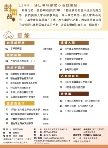 %u767c %u884c %u4eba %u4f5b%u5f1f%u5b50%u5354%u6703%u7de8%u3000%u3000%u8f2f %u3000%u7de8%u8f2f%u90e8%u767c %u884c %u6240 %u3000%u4f5b%u5f1f%u5b50%u5354%u6703%u3000%u6703%u3000%u3000%u5740%u96fb%u3000%u3000%u8a71%u50b3%u3000%u3000%u771f%u96fb%u5b50%u4fe1%u7bb1%u9ad8%u96c4%u5e02%u5de6%u71df%u5340%u6587%u5e9c%u8def461%u865f(07)346 -1308%u3000(07)346 -1306chief.sob@gmail.com%u4e2d%u83ef%u90f5%u653f%u9ad8%u96c4%u5b57%u7b2c120%u865f%u767b%u8a18%u8b49%u767b%u8a18%u70ba%u96dc%u8a8c%u4ea4%u5bc4%u4e2d%u83ef%u6c11%u570b%u516b%u5341%u4e8c%u5e74%u56db%u6708%u4e00%u65e5%u5275%u520a%u3000%u4e2d%u83ef%u6c11%u570b%u4e00%u4e00%u56db%u5e74%u5341%u6708%u51fa%u520a<%u7d20%u6750%u4f7f%u7528>%u00a9 pngtree%u532f%u6b3e%u9280%u884c%u3000%u4e2d%u83ef%u90f5%u653f (%u9280%u884c%u4ee3%u78bc700 )%u5de6%u71df%u798f%u5c71%u90f5%u5c40%u532f%u6b3e%u5e33%u865f%u30000041891-0058253%u6236%u3000%u3000%u540d%u3000%u4f5b%u5f1f%u5b50%u5354%u6703%u9ec3%u4fee%u203b%u532f%u6b3e%u8acb%u8a3b%u660e%u59d3%u540d2930313234%u53f0%u5357%u7fa9%u5de5%u5718%u8a2a%u8996%u6025%u96e3%u500b%u6848%u767d%u96f2%u5713%u5922%u8a8d%u990a%u5b78%u751f%u898b%u9762%u6703%u5de6%u71df%u679c%u8cbf%u793e%u5340%u95dc%u61f7%u767d%u96f2%u5713%u5922%u734e%u52a9%u5b78%u91d1%u500b%u6848%u6025%u96e3%u6fdf%u52a9%u500b%u6848363810%u6708%u5404%u9053%u5834%u8ab2%u7a0b%u53ca%u5171%u4fee%u6d3b%u52d510%u6708%u96fb%u8996%u5f18%u6cd5%u7bc0%u76ee%u8868%u6eab%u6696%u4eba%u9593404648%u5343%u4f5b%u5c71%u6148%u5584%u57fa%u91d1%u6703- 8%u6708%u529f%u5fb7%u82b3%u540d%u9304%u4f5b%u5f1f%u5b50%u5354%u6703- 8%u6708%u529f%u5fb7%u82b3%u540d%u9304%u5343%u4f5b%u5c71%u7cfb%u5404%u9053%u5834%u670d%u52d9%u8655%u5fb5%u4fe1%u7bc7%u6d3b%u52d5%u8207%u65b0%u8a0a02%u8001%u79aa%u5e2b%u89e3%u60d1%u767d%u96f2%u8001%u79aa%u5e2b04%u516d%u7956%u7684%u5f92%u5b6b%u99ac%u7956%u9053%u4e00(%u4e00)%u937e%u73b2%u65bd%u5d07%u5fb7080910121417%u5354%u6703%u7406%u76e3%u4e8b%u806f%u5e2d%u6703%u8b70%u5831%u5c0e%u57fa%u91d1%u6703%u8463%u4e8b%u6703%u5713%u6eff%u4ea4%u63a5%u8207%u6cd5%u5e2b%u6709%u7d04-%u9752%u5e74%u5b78%u54e1%u518d%u805a%u9996%u8207%u6cd5%u5e2b%u6709%u7d04%u6d3b%u52d5%u5206%u4eab%u5343%u4f5b%u5c71%u7684%u6578%u4f4d%u8f49%u578b%u4e4b%u8def%u82b1%u84ee%u8fa6%u4e8b%u8655%u53c3%u8a2a%u767d%u96f2%u79aa%u5bfa%u8001%u79aa%u5e2b%u89e3%u60d1%u7ce0%u5b5f%u6853%u66fe%u6587%u4fca%u6f58%u70ab%u5b8f%u9999%u7a4d%u7d4420222628%u4fee%u9580%u91dd%u6cd5%u4ecb%u7d39%u4e4b%u8ab2%u5f8c%u5fc3%u5f97%u5206%u4eab%u6c23%u8840%u9670%u967d%u865b%u8b49%u4e4b%u88dc%u990a%u8207%u98df%u7642%uff12%u4e2d%u91ab%u7814%u7fd2%u7fa9%u8a3a%u5fc3%u5f97%u5206%u4eab%u990a%u751f%u5b78%u5802%u852c%u98df%u70f9%u98ea%u6559%u5b78%u5065%u5eb7%u65b0%u98df%u4ee3%u7126%u9ede%u8a71%u984c%u4f5b%u5f1f%u5b50%u5712%u5730%u5fb5%u4fe1%u7bc7114%u5e74%u5343%u4f5b%u5c71%u5bd2%u51ac%u737b%u611b%u5fc3%u6d3b%u52d5%u958b%u8dd1%uff01%u3000%u5275%u6703%u4e4b%u521d%uff0c%u96f2%u8001%u79aa%u5e2b%u6bb7%u5207%u53ee%u5680%uff1a%u300c%u57fa%u91d1%u6703%u662f%u70ba%u96ea%u4e2d%u9001%u70ad%u800c%u5275%u7acb%u7684%uff0c%u6211%u5011%u8981%u505a%u4eba%u5bb6%u4e0d%u9858%u610f%u505a%u7684%uff0c%u505a%u4eba%u5bb6%u5ffd%u7565%u7684%uff0c%u505a%u4eba%u5bb6%u770b%u4e0d%u5230%u7684%u3002%u300d%u57fa%u91d1%u6703%u6bcf%u5e74%u8209%u8fa6%u300c%u5343%u4f5b%u5c71%u5bd2%u51ac%u737b%u611b%u5fc3%u6d3b%u52d5%u300d%u5e0c%u671b%u5c07%u793e%u6703%u5927%u773e%u7684%u9019%u4efd%u611b%u5fc3%u50b3%u5230%u5f31%u52e2%u5bb6%u5ead%u7684%u624b%u4e0a%uff0c%u8b93%u611b%u5fc3%u6eab%u6696%u793e%u6703%u7684%u6bcf%u4e00%u500b%u89d2%u843d%uff01