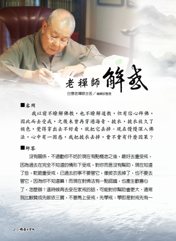 %u25a0%u5ba2%u554f%u6211%u4ee5%u524d%u4e0d%u77ad%u89e3%u4f5b%u6559%uff0c%u4e5f%u4e0d%u77ad%u89e3%u9053%u6559%uff0c%u4f46%u6709%u4fe1%u5fc3%u62dc%u4f5b%uff0c%u56e0%u6b64%u800c%u53bb%u53d7%u6212%uff0c%u4e4b%u5f8c%u672a%u66fe%u518d%u7a7f%u904e%u6d77%u9752%u3001%u62ab%u8863%uff0c%u62ab%u8863%u653e%u4e45%u4e86%u892a%u8272%uff0c%u89ba%u5f97%u7a7f%u51fa%u53bb%u4e0d%u597d%u770b%uff0c%u5c31%u628a%u5b83%u4e1f%u6389%u3002%u73fe%u5728%u6162%u6162%u6df1%u5165%u4f5b%u6cd5%uff0c%u5fc3%u4e2d%u6709%u4e00%u56f0%u60d1%uff0c%u6211%u628a%u62ab%u8863%u4e1f%u6389%uff0c%u6703%u4e0d%u6703%u6709%u4ec0%u9ebc%u56e0%u679c%uff1f%u25a0%u5e2b%u7b54%u3000%u3000%u6c92%u6709%u95dc%u4fc2%uff0c%u4e0d%u904e%u52f8%u4f60%u4e0d%u59a8%u65bc%u73fe%u5728%u6709%u9ede%u6982%u5ff5%u4e4b%u5f8c%uff0c%u6700%u597d%u53bb%u91cd%u53d7%u6212%uff0c%u56e0%u70ba%u904e%u53bb%u5728%u5b8c%u5168%u4e0d%u77e5%u9053%u7684%u60c5%u5f62%u4e0b%u53d7%u6212%uff0c%u5c0d%u4f60%u800c%u8a00%u6c92%u6709%u5e6b%u52a9%uff0c%u73fe%u5728%u77e5%u9053%u4e86%u4e9b%uff0c%u4e7e%u8106%u91cd%u53d7%u6212%uff0c%u5df2%u904e%u53bb%u7684%u4e8b%u4e0d%u8981%u7ba1%u5b83%uff0c%u50cf%u62ab%u8863%u4e1f%u6389%u4e86%uff0c%u4e5f%u4e0d%u8981%u53bb%u7ba1%u5b83%uff0c%u56e0%u70ba%u4f60%u4e0d%u77e5%u9053%u561b%uff01%u800c%u73fe%u5728%u5c0d%u4f5b%u6cd5%u6709%u4e00%u9ede%u8a8d%u8b58%uff0c%u4e5f%u7522%u751f%u6b61%u559c%u5fc3%u4e86%uff0c%u600e%u9ebc%u8fa6%uff1f%u9019%u6642%u5019%u518d%u53bb%u53d7%u5728%u5bb6%u6212%u7684%u8a71%uff0c%u53ef%u80fd%u5c0d%u4f60%u5e6b%u52a9%u6703%u66f4%u5927%u3002%u901a%u5e38%u6211%u6bd4%u8f03%u8d0a%u6210%u5148%u7688%u4f9d%u4e09%u5bf6%uff0c%u4e0d%u8981%u99ac%u4e0a%u53d7%u6212%uff0c%u5148%u5b78%u6212%uff1b%u5b78%u5373%u662f%u5c0d%u6212%u5148%u6709%u4e00%u767d%u96f2%u8001%u79aa%u5e2b%u4e3b%u7b54%uff0f%u7de8%u8f2f%u90e8%u6574%u74062|