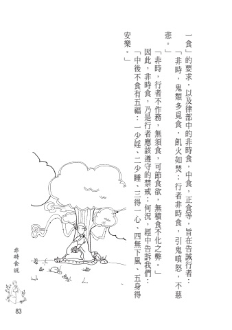 %u300c%u3002%u5b89%u6a02%u3002%u300d%u7121%u7a4d%u98df%u4e0d%u5316%u4e4b%u5f0a%uff0c%u53ef%u7bc0%u98df%u6b32%uff0c%u7121%u9808%u98df%uff0c%u884c%u8005%u4e0d%u4f5c%u52d9%uff0c%u975e%u6642%uff1a%u300c%u7d93%u4e2d%u544a%u8a34%u6211%u5011%uff0c%u4f55%u6cc1%uff1b%u4e43%u662f%u884c%u8005%u61c9%u8a72%u9075%u5b88%u7684%u7981%u6212%uff0c%u975e%u6642%u98df%uff0c%u56e0%u6b64%u4e94%u8eab%u5f97%u3001%u56db%u7121%u4e0b%u98a8%u3001%u4e09%u5f97%u4e00%u5fc3%u3001%u4e8c%u5c11%u7761%u3001%u4e00%u5c11%u5a6c%uff1a%u4e2d%u5f8c%u4e0d%u98df%u6709%u4e94%u798f%u3002%u300d%u300c%u4e0d%u6148%u60b2%uff0c%u5f15%u9b3c%u55d4%u6012%uff0c%u884c%u8005%u975e%u6642%u98df%uff1b%u98e2%u706b%u5982%u711a%uff0c%u9b3c%u985e%u591a%u8993%u98df%uff0c%u975e%u6642%uff1a%u300c%u65e8%u5728%u544a%u8aa1%u884c%u8005%uff0c%u6b63%u98df%u7b49%uff0c%u4e2d%u98df%uff0c%u4ee5%u53ca%u5f8b%u90e8%u4e2d%u7684%u975e%u6642%u98df%uff0c%u7684%u8981%u6c42%u300d%u4e00%u98df%u975e%u6642%u98df%u8aaa83
