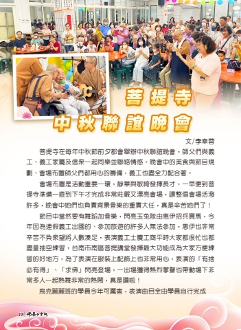 %u6587/%u674e%u5e78%u84c9%u3000%u3000%u83e9%u63d0%u5bfa%u5728%u6bcf%u5e74%u4e2d%u79cb%u7bc0%u524d%u5915%u90fd%u6703%u8209%u8fa6%u4e2d%u79cb%u806f%u8abc%u665a%u6703%uff0c%u5e2b%u7236%u5011%u8207%u7fa9%u5de5%u3001%u7fa9%u5de5%u5bb6%u5c6c%u53ca%u4fe1%u773e%u4e00%u8d77%u540c%u6a02%u4e26%u806f%u7d61%u60c5%u611f%u3002%u665a%u6703%u4e2d%u7684%u7f8e%u98df%u8207%u7bc0%u76ee%u898f%u5283%u3001%u6703%u5834%u5e03%u7f6e%u5e2b%u7236%u5011%u90fd%u7528%u5fc3%u7684%u7c4c%u5099%uff0c%u7fa9%u5de5%u4e5f%u76e1%u5168%u529b%u914d%u5408%u8457%u3002%u3000%u3000%u6703%u5834%u5e03%u7f6e%u662f%u6d3b%u52d5%u91cd%u8981%u4e00%u74b0%uff0c%u975c%u83ef%u8207%u654f%u7dba%u767c%u63ee%u9577%u624d%uff0c%u4e00%u65e9%u4fbf%u5230%u83e9%u63d0%u5bfa%u6e96%u5099%u4e00%u76f4%u5230%u4e0b%u5348%u624d%u5b8c%u6210%u975e%u5e38%u838a%u56b4%u53c8%u6f02%u4eae%u6703%u5834%uff0c%u8b93%u6574%u500b%u6703%u5834%u6d3b%u6f51%u8a31%u591a%uff0c%u665a%u6703%u4e2d%u5979%u5011%u4e5f%u8ca0%u8cac%u80cc%u666f%u97f3%u6a02%u7684%u91cd%u8cac%u5927%u4efb%uff0c%u771f%u662f%u8f9b%u82e6%u5979%u5011%u4e86%uff01%u3000%u3000%u7bc0%u76ee%u4e2d%u7576%u7136%u8981%u6709%u821e%u8e48%u52a0%u97f3%u6a02%uff0c%u9583%u4eae%u7389%u5154%u968a%u7531%u60e0%u4f0a%u62db%u5175%u8cb7%u99ac%uff0c%u4eca%u5e74%u56e0%u70ba%u9023%u5047%u7fa9%u5de5%u51fa%u570b%u7684%u3001%u53c3%u52a0%u65c5%u904a%u7684%u8a31%u591a%u4eba%u7121%u6cd5%u53c3%u52a0%uff0c%u60e0%u4f0a%u4e5f%u975e%u5e38%u8f9b%u82e6%u4e0d%u8ca0%u773e%u671b%u5c07%u4eba%u6578%u6e4a%u8db3%uff0c%u8868%u6f14%u7fa9%u5de5%u58eb%u8fb2%u5de5%u5546%u5e73%u6642%u5927%u5bb6%u90fd%u5f88%u5fd9%u4e5f%u90fd%u76e1%u91cf%u62bd%u7a7a%u7df4%u7fd2%uff0c%u53f0%u5357%u5e02%u5357%u5340%u83e9%u63d0%u8b1b%u5802%u767c%u63ee%u6700%u5927%u529f%u80fd%u6210%u70ba%u5927%u5bb6%u65b9%u4fbf%u7df4%u7fd2%u7684%u597d%u5730%u65b9%uff0c%u70ba%u4e86%u8868%u6f14%u5728%u670d%u88dd%u4e0a%u914d%u98fe%u4e0a%u4e5f%u975e%u5e38%u7528%u5fc3%uff0c%u8868%u6f14%u7684%u300c%u6709%u6368%u5fc5%u6709%u5f97%u300d%u3001%u300c%u6c42%u4f5b%u300d%u9583%u4eae%u767b%u5834%uff0c%u4e00%u51fa%u5834%u7372%u5f97%u71b1%u70c8%u638c%u8072%u4e5f%u5e36%u52d5%u5834%u4e0b%u975e%u5e38%u591a%u4eba%u4e00%u8d77%u71b1%u821e%u975e%u5e38%u7684%u71b1%u9b27%uff0c%u771f%u662f%u8b9a%u5566%uff01%u3000%u3000%u70cf%u514b%u9e97%u9e97%u73ed%u7684%u5b78%u54e1%u4eca%u5e74%u53ef%u53b2%u5bb3%uff0c%u8868%u6f14%u66f2%u76ee%u5168%u7531%u5b78%u54e1%u81ea%u884c%u5b8c%u621018|