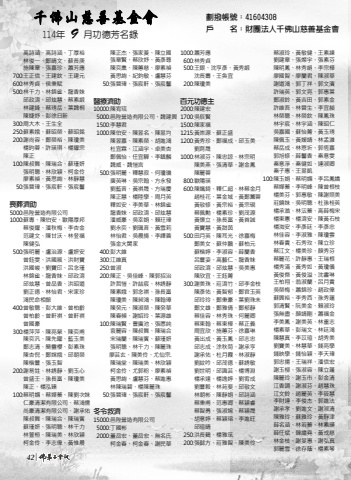 %u5283%u64a5%u5e33%u865f%uff1a41604308%u6236 %u540d%uff1a%u8ca1%u5718%u6cd5%u4eba%u5343%u4f5b%u5c71%u6148%u5584%u57fa%u91d1%u6703%u9ad8%u8a69%u6db5%u3001%u9ad8%u8a69%u6db5%u3001%u4e01%u539a%u88d5%u3000%u6797%u4fca%u4e00%u3001%u912d%u6674%u6587%u3001%u8607%u9577%u5e9a%u3000%u65bd%u9673%u7ae0%u3001%u5f35%u5609%u73cd%u3001%u856d%u82b3%u61c9%u3000700:%u738b%u6b63%u4fe1%u3001%u738b%u5efa%u6b3d%u3001%u738b%u5efa%u5143%u3000600:%u6797%u79c0%u8c9e%u3001%u4faf%u79c9%u8ce6%u3000%u3000%u3000%u3000%u3000500:%u6797%u5343%u529b%u3001%u6797%u9326%u96c0%u3001%u9f8d%u9999%u59b9%u3000%u90b1%u653f%u6def%u3001%u90b1%u70ab%u6167%u3001%u8521%u7d20%u7dde%u3000%u6797%u5efa%u92d2%u3001%u8521%u7407%u5cb3%u3001%u8449%u9b4f%u6850%u3000%u9673%u5a55%u59a4%u3001%u5f6d%u5f90%u65e5%u65b0%u3000%u3000%u3000%u3000300:%u5468%u5927%u6728%u3001%u738b%u751f%u5168%u3000%u3000%u3000%u3000%u3000250:%u8607%u7d20%u5a25%u3001%u8607%u662d%u69ae%u3001%u8607%u662d%u9298%u3000200:%u8b1d%u5c1a%u5bb9%u3001%u912d%u69ae%u88d5%u3001%u9673%u74ca%u7f8e%u3000%u694a%u6600%u84c9%u3001%u8a31%u745b%u742a%u3001%u694a%u8000%u5b97%u3000%u9673%u6b63%u3000%u3000%u3000%u3000%u3000%u3000%u3000%u3000%u3000%u3000100:%u9673%u53d4%u821e%u3001%u9673%u745e%u5408%u3001%u8607%u747e%u598d%u3000%u5f35%u660e%u8070%u3001%u6797%u6b23%u7a4e%u3001%u67ef%u91d1%u4f36%u3000%u5ed6%u7d20%u798e%u3001%u9ec3%u601d%u7d62%u3001%u6797%u975c%u6167%u300050:%u5f35%u6649%u744b%u3001%u5f35%u5bb8%u8ed2%u3001%u5f35%u5bb8%u99a8%u3000%u55aa%u846c%u6fdf%u52a95000:%u9091%u965b%u71df%u9020%u6709%u9650%u516c%u53f8%u3000%u3000%u3000%u30001000:%u8607%u5c08%u3001%u9673%u4f2f%u5b89%u3001%u6b50%u967d%u539a%u90a6%u3000%u8521%u4fca%u8000%u3001%u6f58%u79cb%u6885%u3001%u674e%u674f%u91d1%u3000%u8303%u5efa%u6587%u3001%u9673%u7518%u6c83%u3001%u6797%u767b%u798f%u3000%u9673%u5065%u5f18%u3000%u3000%u3000%u3000%u3000%u3000%u3000%u3000%u3000500:%u5f35%u660e%u9e97%u3001%u76e7%u6cbb%u6e90%u3001%u76e7%u598d%u5b89%u3000%u66fe%u923a%u96ef%u3001%u6d2a%u570b%u5c55%u3001%u6d2a%u8ca1%u5bf6%u3000%u6d2a%u570b%u5cfb%u3001%u5289%u5bf6%u5370%u3001%u5442%u5ff5%u747e%u3000%u6797%u9326%u96c0%u3001%u9f8d%u9999%u59b9%u3001%u90b1%u653f%u6def%u3000%u90b1%u70ab%u6167%u3001%u66fe%u54c1%u9999%u3001%u6d2a%u662d%u9053%u3000%u5289%u6b63%u5fb7%u3001%u6797%u6021%u541b%u3001%u5b8b%u5bb6%u73cd%u3000%u9d3b%u6c11%u547d%u76f8%u9928%u3000%u3000%u3000%u3000%u3000%u3000%u3000400:%u66fe%u654f%u8070%u3001%u5f6d%u5927%u7dad%u3001%u66fe%u67cf%u9f61%u3000%u66fe%u67cf%u9f61%u3001%u66fe%u8ed2%u797a%u3001%u66fe%u8ed2%u797a%u3000%u66fe%u570b%u8c6a%u3000%u3000%u3000%u3000%u3000%u3000%u3000%u3000%u3000300:%u694a%u840d%u840d%u3001%u9673%u4eae%u7e08%u3001%u9673%u5955%u752b%u3000%u9673%u5955%u6c4e%u3001%u9673%u5148%u66dc%u3001%u85cd%u7389%u7f8e%u3000%u912d%u5fd7%u6e05%u3001%u7c21%u9748%u6afb%u3001%u5f6d%u7d20%u73e0%u3000%u9673%u674f%u502a%u3001%u912d%u5ae6%u5a25%u3001%u90b1%u671d%u69ae%u3000%u9673%u6977%u8c50%u3001%u5f35%u7389%u667a%u3000%u3000%u3000%u3000%u3000200:%u8b1d%u6613%u7521%u3001%u6797%u7d89%u975c%u3001%u5289%u7389%u5fc3%u3000%u66fe%u76db%u58ec%u3001%u5b6b%u9577%u5bcc%u3001%u9673%u74ca%u7f8e%u3000%u9673%u6b63%u3001%u694a%u6cd3%u81fb%u3000%u3000%u3000%u3000%u3000%u3000100:%u8521%u660e%u5a9a%u3001%u8521%u5b05%u84c1%u3001%u9673%u5289%u6b21%u59b9%u4ec1%u8c6a%u6e05%u6f54%u6709%u9650%u516c%u53f8%u3001%u8521%u9d3b%u5112%u5c1a%u8c6a%u6e05%u6f54%u6709%u9650%u516c%u53f8%u3001%u8b1d%u627f%u4f51%u9673%u53d4%u821e%u3001%u9673%u745e%u5408%u3001%u9673%u745e%u8cd3%u3000%u8607%u747e%u598d%u3001%u5f35%u660e%u8070%u3001%u6797%u5343%u529b%u3000%u6797%u8431%u6853%u3001%u9673%u745e%u7f8e%u3001%u6797%u6b23%u7a4e%u3000%u67ef%u91d1%u4f36%u3001%u674e%u5fd7%u5049%u3001%u9ec3%u60df%u6668%u3000%u9673%u6b63%u6770%u3001%u5f35%u5bb6%u83f1%u3001%u9673%u7acb%u570b%u3000%u5f35%u7ae0%u8ce2%u3001%u8521%u6b23%u59a4%u3001%u9ec3%u5f65%u5c0a%u3000%u9673%u5955%u718f%u3001%u9673%u8559%u6148%u3001%u5ed6%u7d20%u798e%u3000%u9ec3%u601d%u7d62%u3001%u7d00%u921e%u654f%u3001%u76e7%u6167%u82ac%u300050:%u5f35%u6649%u744b%u3001%u5f35%u5bb8%u8ed2%u3001%u5f35%u5bb8%u99a8%u3000%u91ab%u7642%u6fdf%u52a910000:%u9673%u5ba5%u7402%u3000%u3000%u3000%u3000%u3000%u3000%u3000%u3000%u30005000:%u9091%u965b%u71df%u9020%u6709%u9650%u516c%u53f8%u3001%u9b4f%u5efa%u82081500:%u674e%u6167%u541b%u3000%u3000%u3000%u3000%u3000%u3000%u3000%u3000%u30001000:%u9673%u4f2f%u5b89%u3001%u9673%u6631%u540d%u3001%u9673%u6631%u5747%u3000%u9673%u6631%u5609%u3001%u9673%u7d20%u69ae%u3001%u80e1%u9032%u9d3b%u3000%u675c%u5b9c%u9716%u3001%u6c5f%u6db5%u5b87%u3001%u5353%u7f8e%u674f%u3000%u912d%u4f69%u6021%u3001%u4efb%u5b9c%u9a4a%u3001%u674e%u93ae%u9e9f%u3000%u9b4f%u5a01%u3001%u9b4f%u6137%u8a00%u3000%u3000%u3000%u3000%u3000%u3000500:%u5f35%u660e%u9e97%u3001%u91cb%u6167%u5bc2%u3001%u4f55%u74ca%u74a3%u3000%u5510%u82f1%u7433%u3001%u5433%u5b97%u7ff0%u3001%u65b9%u6c38%u767c%u3000%u5289%u85cd%u97f3%u3001%u9ec3%u797a%u665f%u3001%u65b9%u745e%u6176%u3000%u9673%u6b63%u6167%u3001%u694a%u9678%u5b78%u3001%u5468%u6708%u82f1%u3000%u91cb%u5982%u5b89%u3001%u674e%u7f8e%u83ef%u3001%u6797%u9326%u96c0%u3000%u9f8d%u9999%u59b9%u3001%u90b1%u653f%u6def%u3001%u90b1%u70ab%u6167%u3000%u6f58%u5a01%u8c6a%u3001%u5433%u5e78%u5a1f%u3001%u8cf4%u73a8%u744b%u3000%u5289%u6c38%u5955%u3001%u5289%u73ee%u97f3%u3001%u9ec3%u96ea%u8389%u3000%u6797%u6021%u541b%u3001%u5433%u6668%u65d6%u3001%u674e%u7e79%u5584%u3000%u5f35%u91d1%u706b%u95a4%u5bb6%u3000%u3000%u3000%u3000%u3000%u3000%u3000400:%u5f6d%u5927%u7dad%u3000%u3000%u3000%u3000%u3000%u3000%u3000%u3000%u3000300:%u6c5f%u7dad%u771f%u3000%u3000%u3000%u3000%u3000%u3000%u3000%u3000%u3000250:%u66fe%u6dd1%u3000%u3000%u3000%u3000%u3000%u3000%u3000%u3000%u3000%u3000200:%u9673%u6b63%u3001%u5433%u4f73%u5cf0%u3001%u9673%u90ed%u62db%u6cbb%u3000%u8a31%u54f2%u6137%u3001%u8a31%u5586%u5bb8%u3001%u6797%u7d89%u975c%u3000%u9673%u7d20%u5a25%u3001%u90ed%u5ff5%u797a%u3001%u5b6b%u9577%u5bcc%u3000%u9673%u74ca%u7f8e%u3001%u9673%u6636%u9d3b%u3001%u9673%u7ff0%u748b%u3000%u9673%u7678%u5143%u3001%u9673%u6dd1%u69ae%u3001%u9673%u7678%u83ef%u3000%u9673%u6625%u983b%u3001%u8b1d
