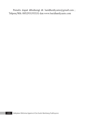 Penulis dapat dihubungi di: baridhardiyanto@gmail.com ; Telpon/WA: 085293195531 dan www.baridhardiyanto.com 172 Kebijakan Reforma Agraria di Era Susilo Bambang Yudhoyono
