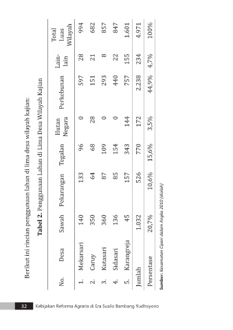 Tabel 2. Penggunaan Lahan di Lima Desa Wilayah Kajian