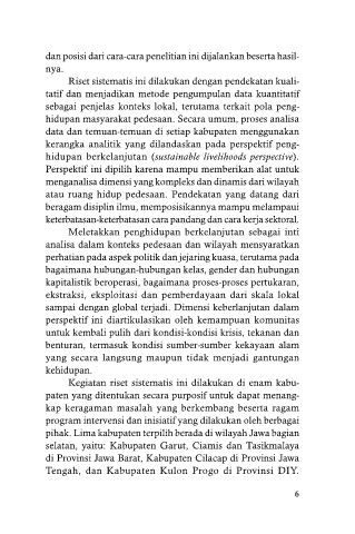 Kegiatan riset sistematis ini dilakukan di enam kabu-