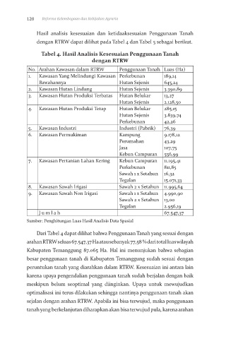 Tabel 4. Hasil Analisis Kesesuaian Penggunaan Tanah