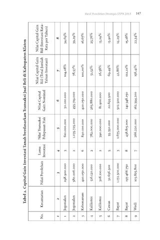 Tabel 2. Capital Gain Investasi Tanah berdasarkan Transaksi Jual Beli di Kabupaten Klaten