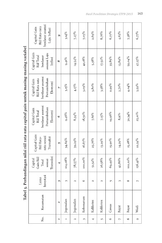 Tabel 5. Perbandingan nilai riil rata-rata capital gain untuk masing-masing variabel