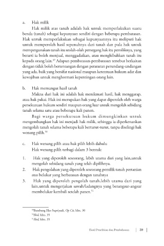 untuk memperoleh hasil sepenuhnya dari tanah dan pula hak untuk