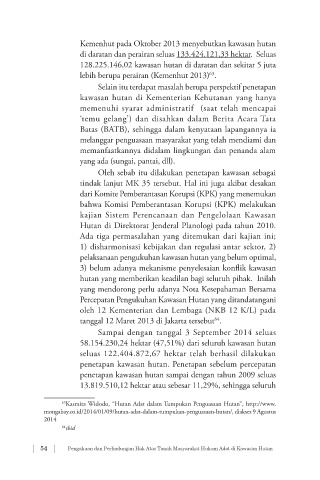 Kemenhut pada Oktober 2013 menyebutkan kawasan hutan