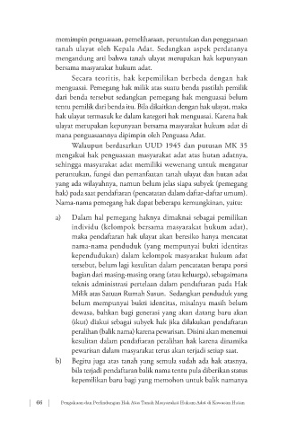 66 Pengakuan dan Perlindungan Hak Atas Tanah Masyarakat Hukum Adat di Kawasan Hutan